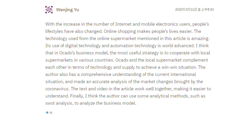 The MOOC contains a lot of knowledge related to digital business. Unlike academic articles, the content of MOOC has many practical cases, videos, and interviews make knowledge easier to understand and apply. Each course page allows comments, so I can learn about other students’ ideas and express my opinions in this way.